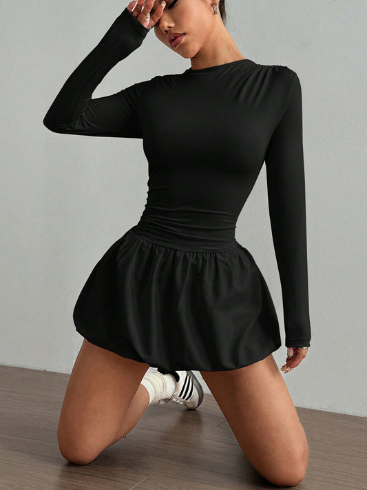Customized European and American temperament slim long sleeve dress black knitted elastic lantern skirt women's clothing to picture mass processing