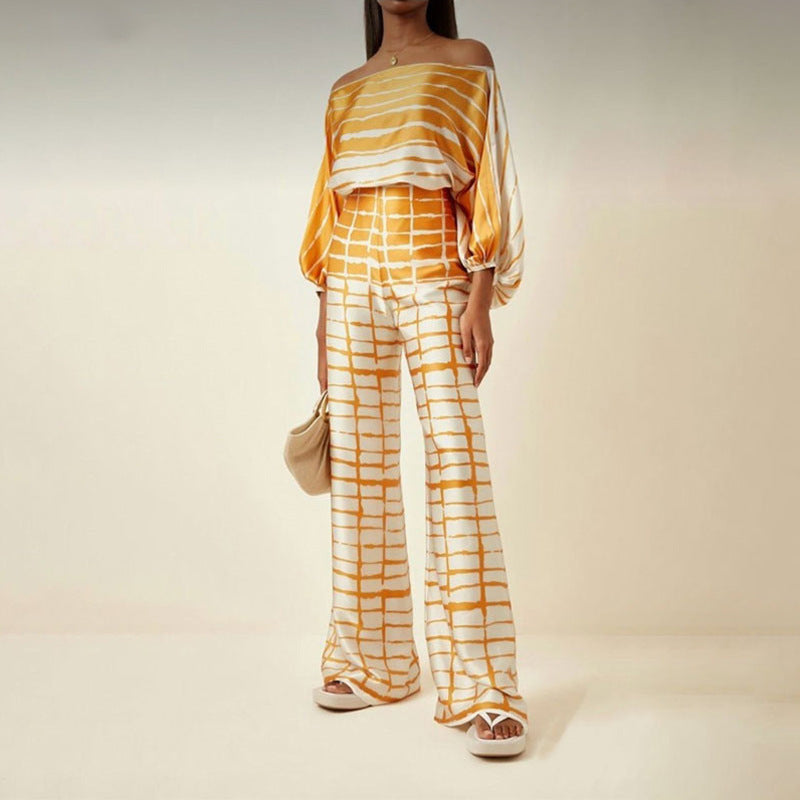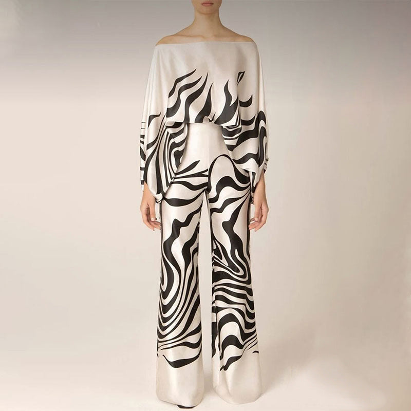 Amazon 2025 New European and American Clothing Loose Bat Sleeve Top Women's Wide-leg Pants Fashion Suit Women's Two-Piece Suit