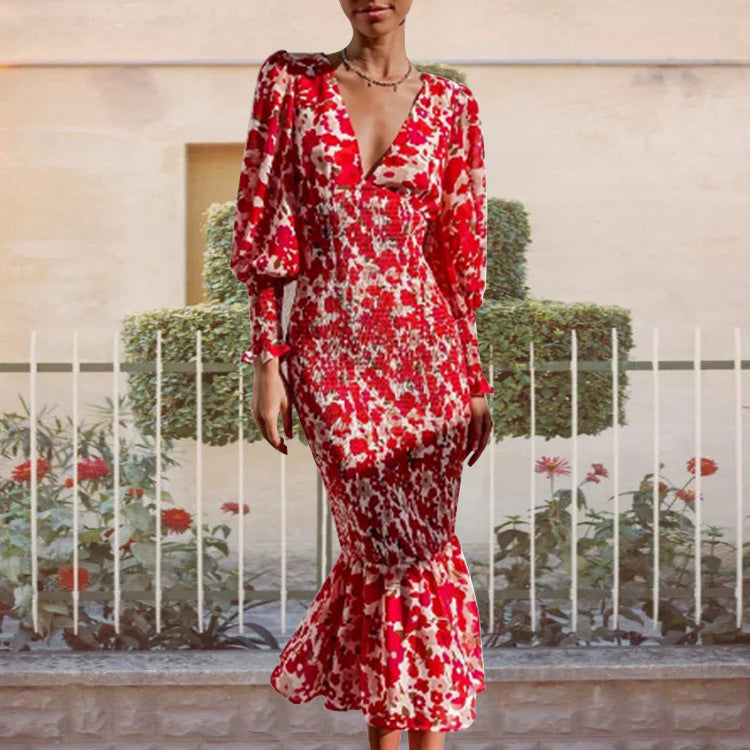 European and American women's clothing Amazon foreign trade new V-neck fashion sexy slim temperament long sleeve spring dress women's 661