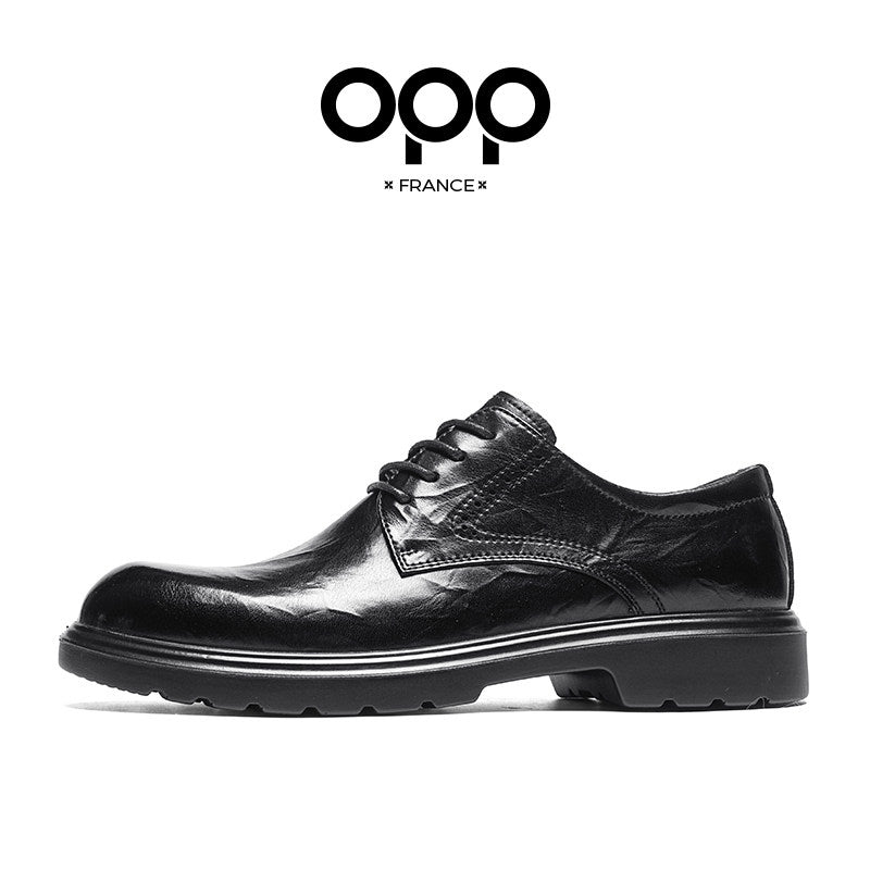 OPP leather shoes spring British black versatile wedding business casual formal pleated thick sole leather derby shoes for men