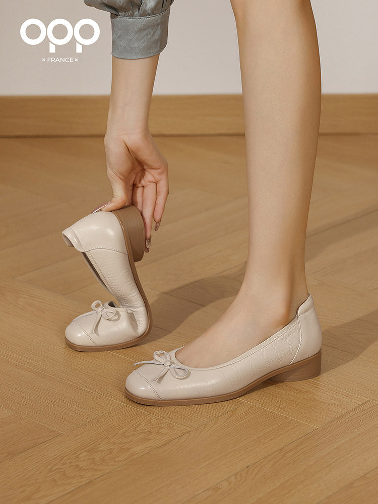 OPP Half Curved French Vintage Mary Jane Shoes Women's 2025 New Bow Spools Thick Heel Medium Heel Women's Shoes