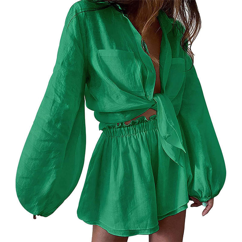 2026 Spring New Products: European and American Cross-border Women's Casual Solid Color Lace-up Suit Top Shorts Casual Suit