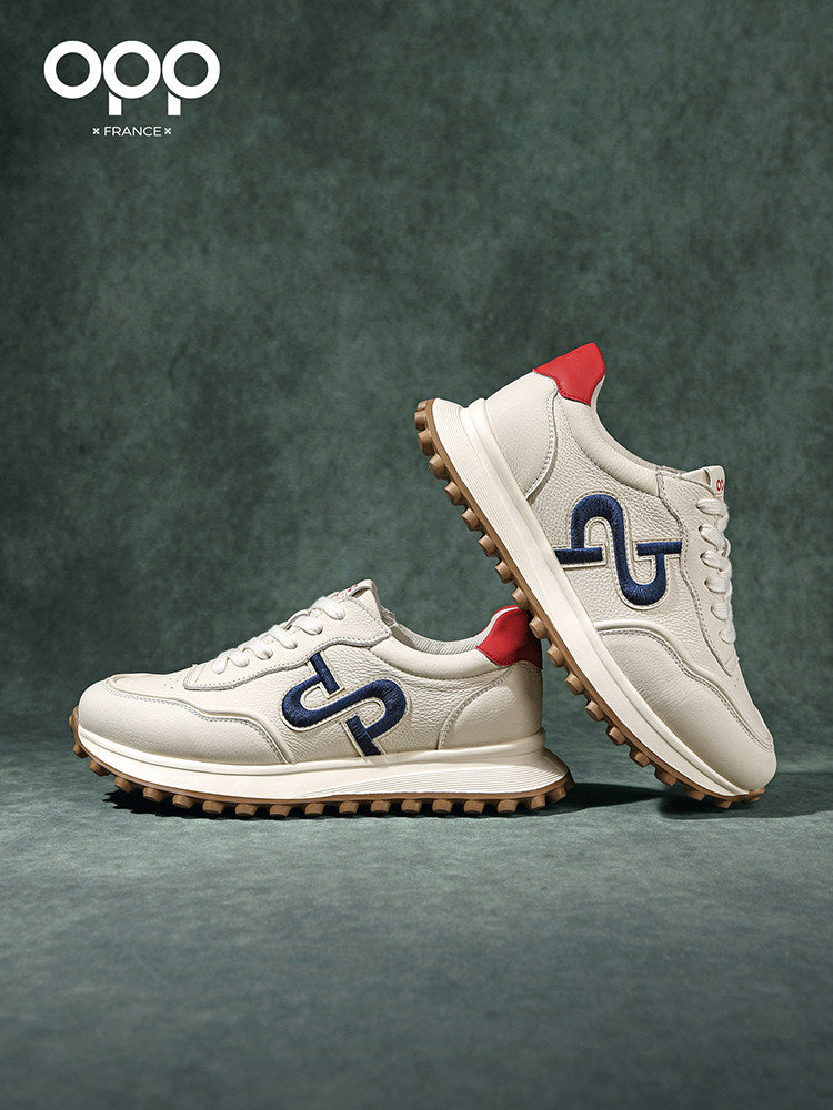 OPP men's shoes spring versatile leather Forrest Gump shoes 2026 new top-layer cowhide outdoor sports running casual shoes