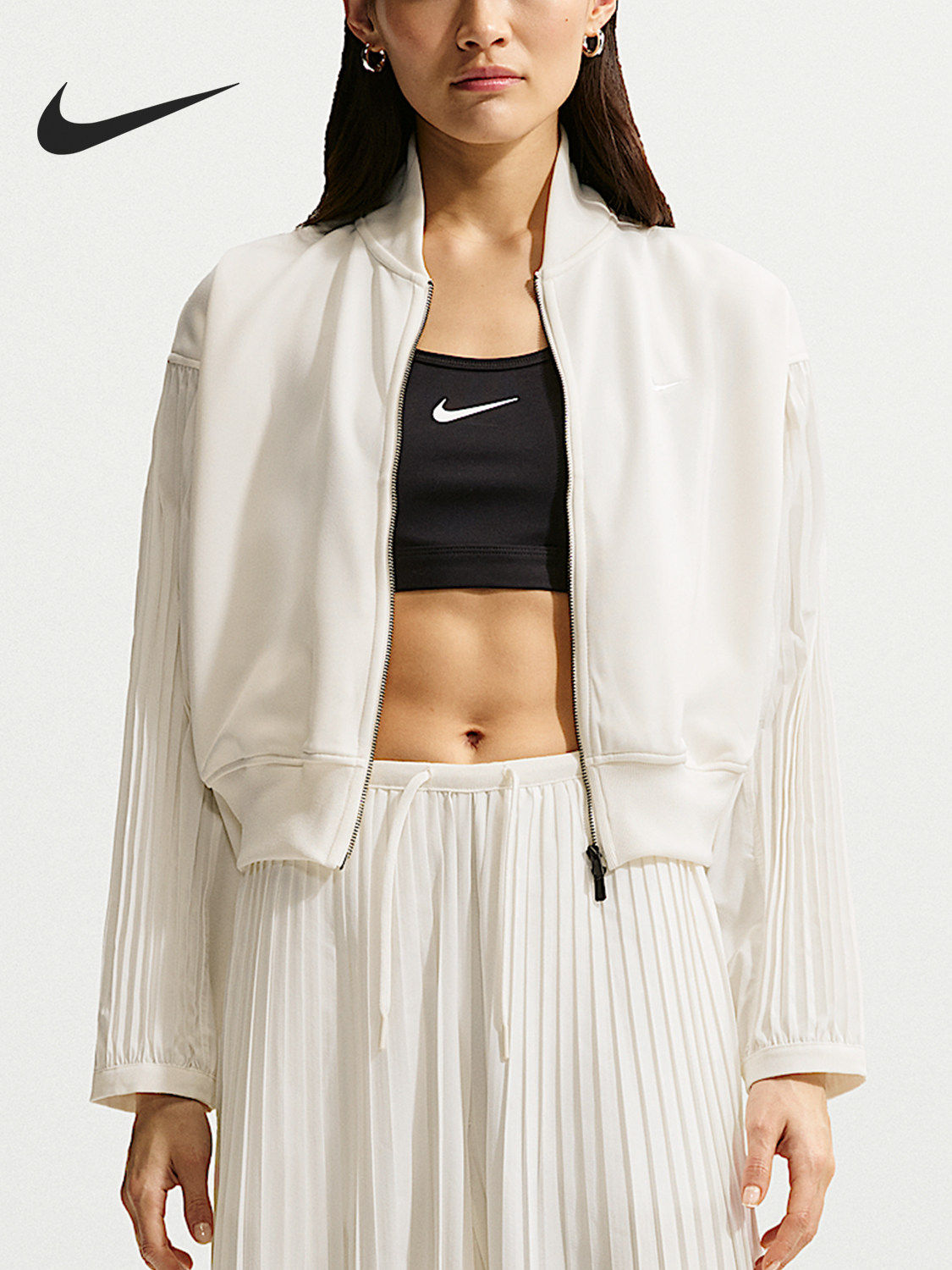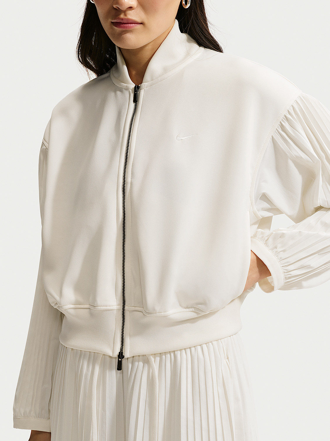 Nike Official Genuine Sportswear Women's Woven Cropped Pleated Sleeve Jacket IQ0437-133