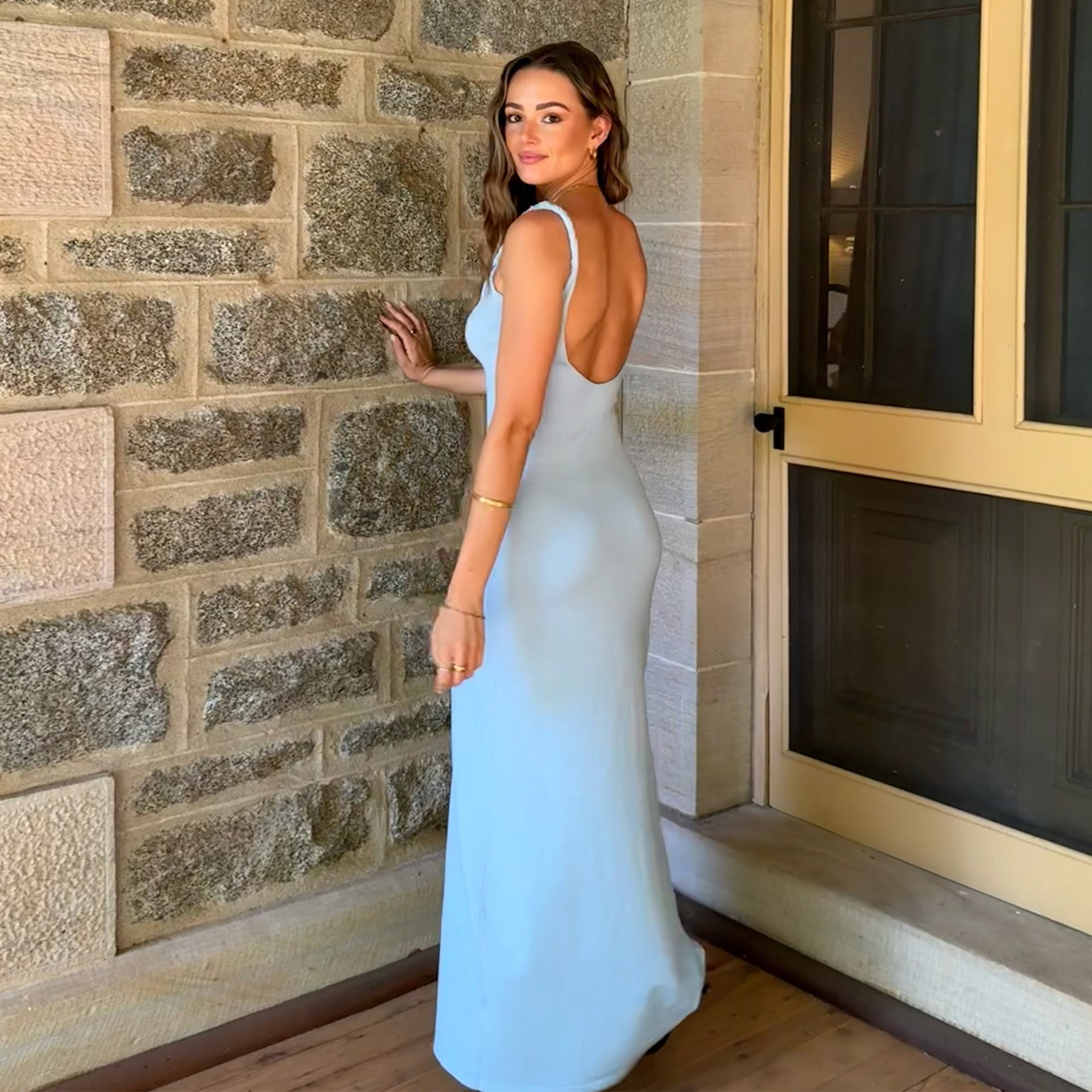 Amazon European and American women's clothing 2025 spring/summer new solid color sexy V-neck backless slim hip slip dress