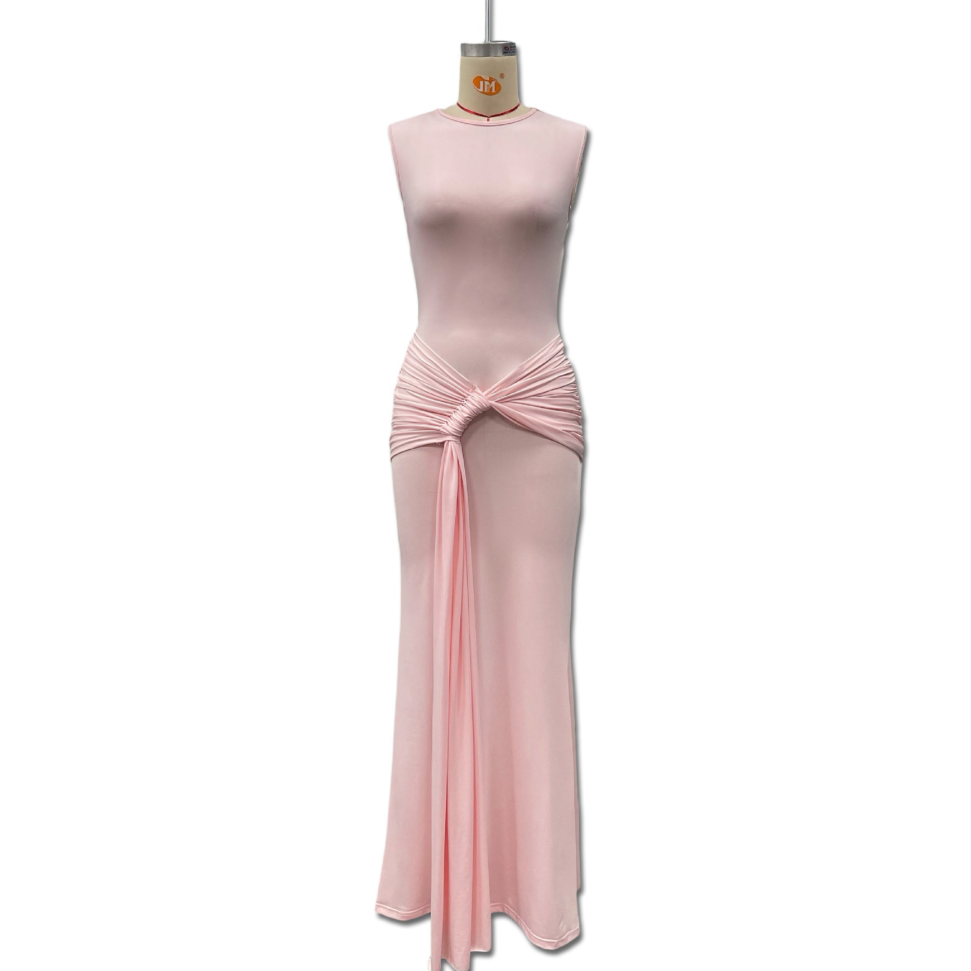 Foreign trade autumn new European and beautiful fashion crew neck sexy open back sleeveless streamer slim fit hip wrap dress for women