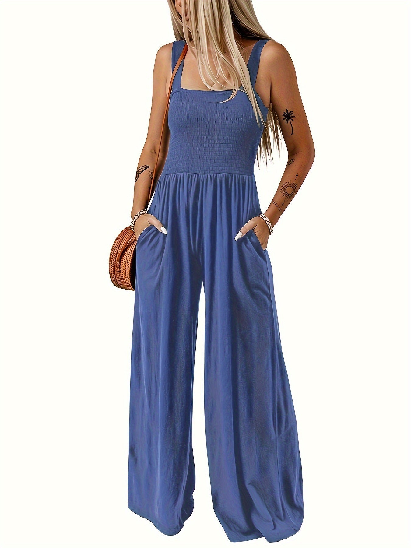 The new 2024 autumn and winter Amazon upper body is packed with solid color wide-leg trousers, simple commuting style, high-waisted suspender body, and a one-piece