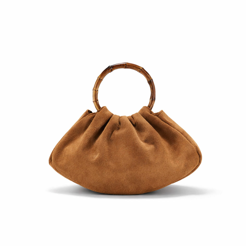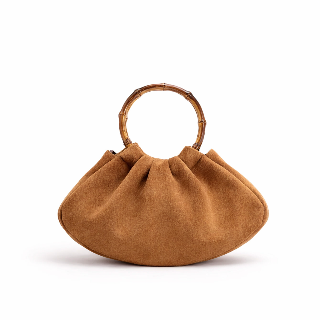 Bolsa Feminina de Veludo Vintage com Alça de Bambu, Luxo Plissado Estilo Maillard, Formato Barco | CIAURA