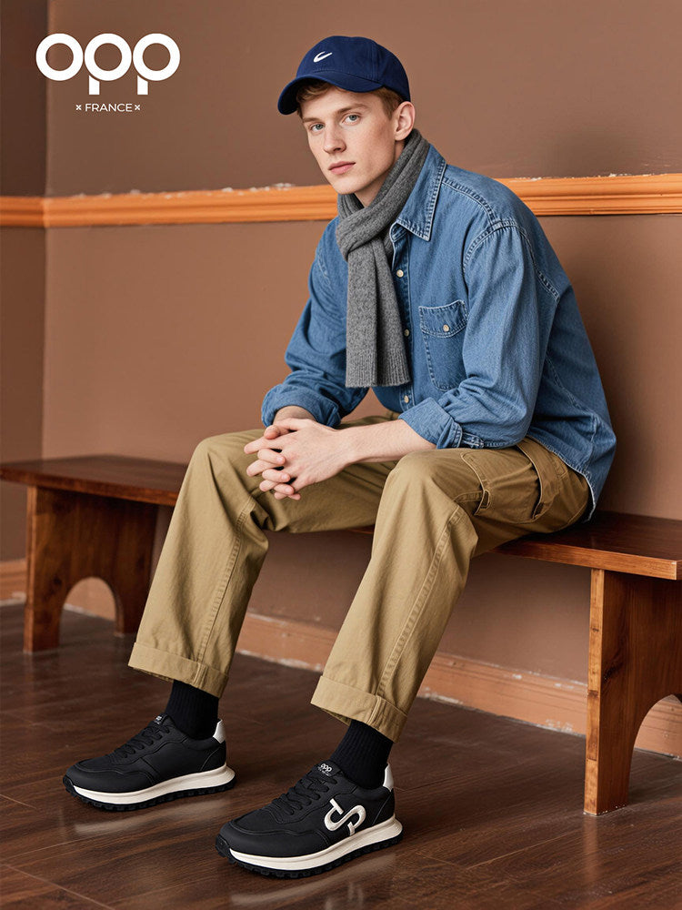 OPP men's shoes spring versatile leather Forrest Gump shoes 2026 new top-layer cowhide outdoor sports running casual shoes
