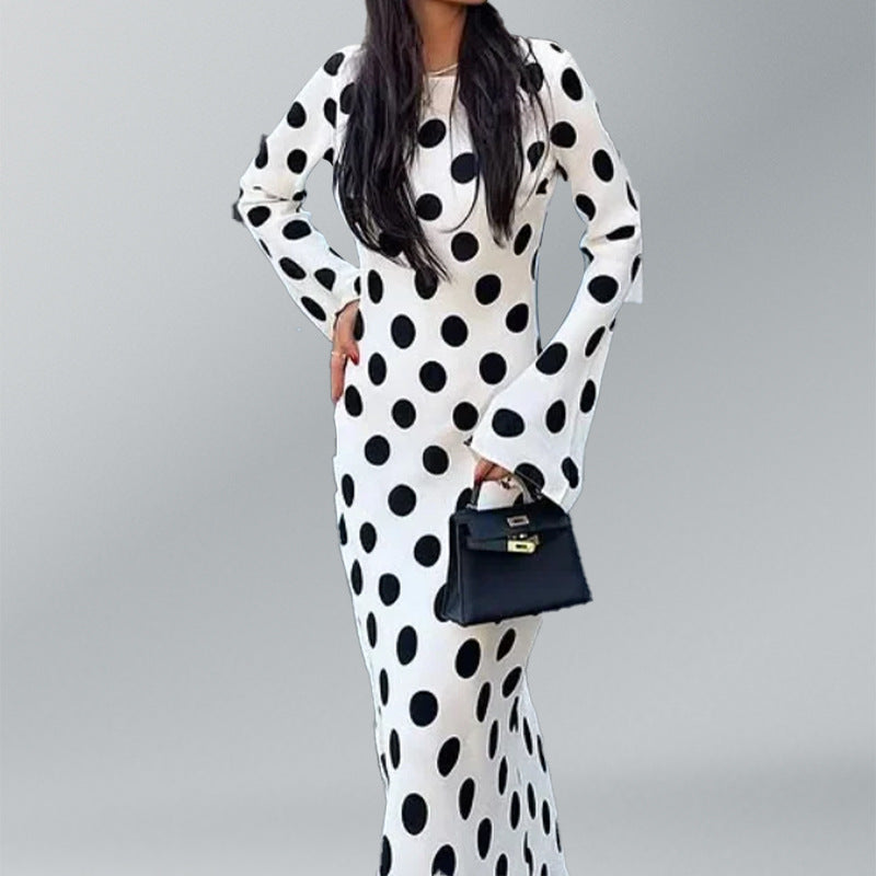 2025 Spring New European and American Style Women's New Women's Waist Ruffled Hem Lace-up Long Sleeve Large Swing Dress