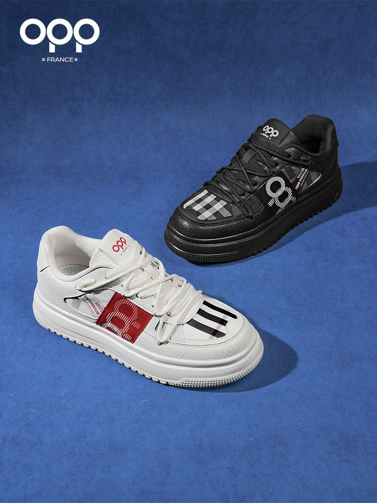 OPP men's shoes spring black sports platform low-top casual versatile high-end trend original leather board shoes for men