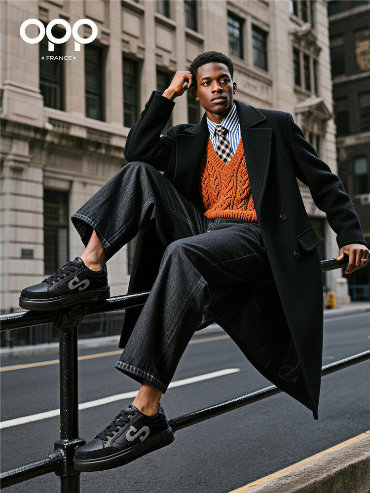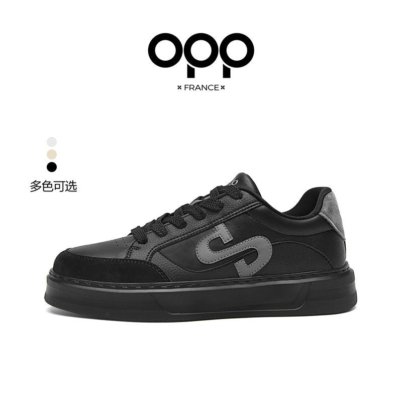 OPP men's shoes spring thick sole comfortable classic leather popular versatile athleisure low-top black board shoes for men
