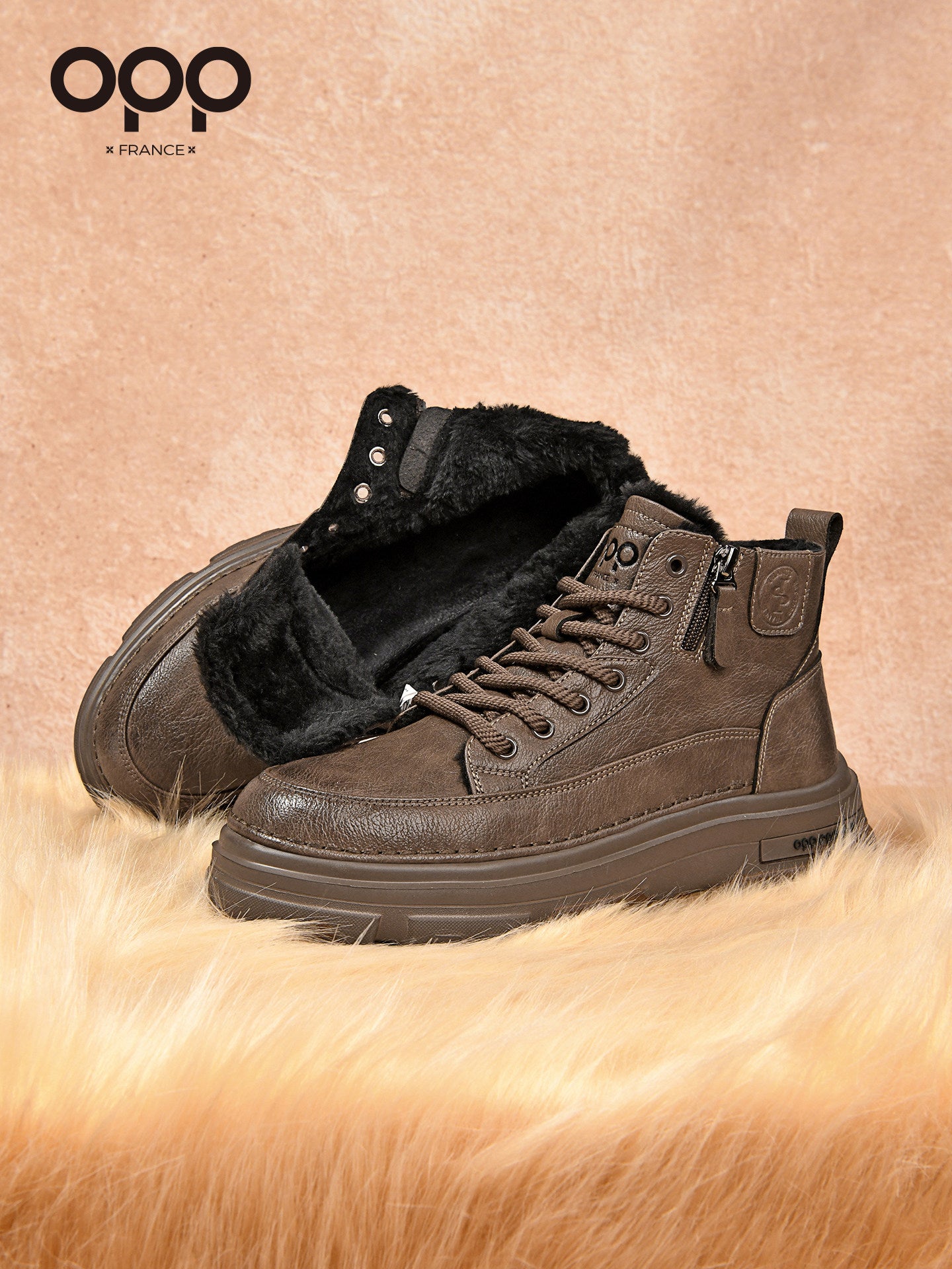 OPP men's shoes, winter fleece warmth, high-top cotton shoes, fashionable hiking boots, outdoor martin boots, snow boots, cargo boots