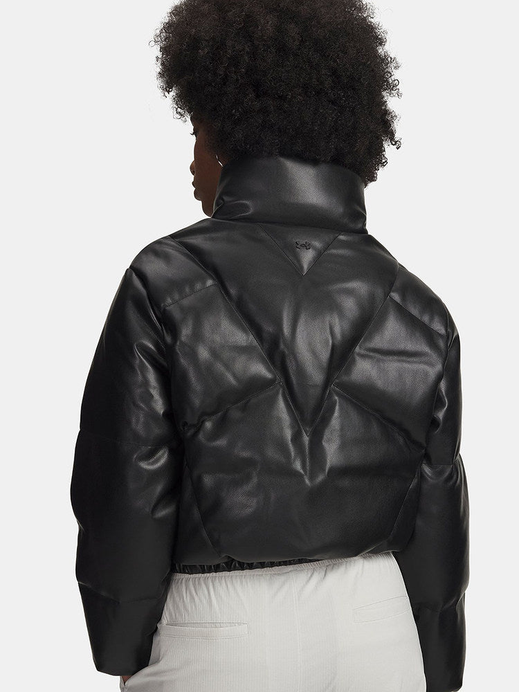 Under Armour Winter Women's Faux Leather Jacket Athleisure Short Down Jacket 6006436-002